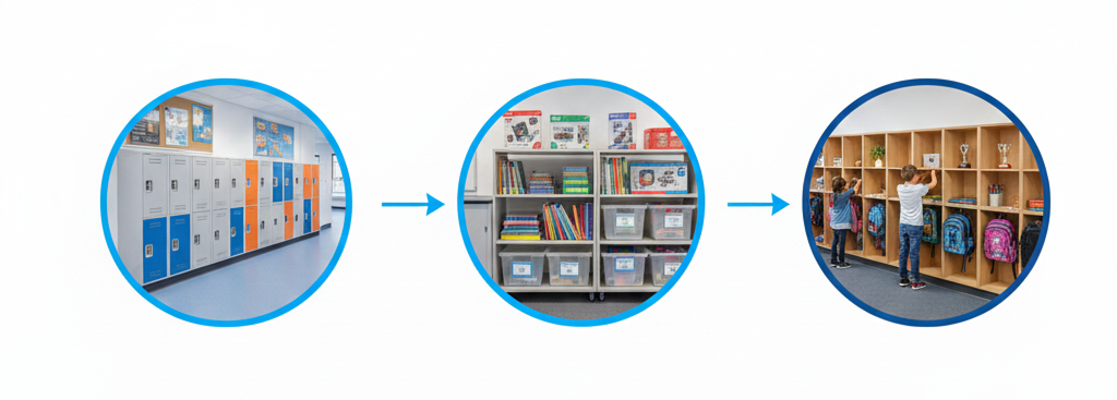 Storage Solutions Flexible lockers and shelving to keep learning spaces organized, secure, and inspiring. Get Quote Secure It Three-quarter Height Lockers Inform 1200 Bookcase Planke Cupboard Cubo Double Storage Bench Secure It Half Height Lockers Storewell 15 Tote Trolley